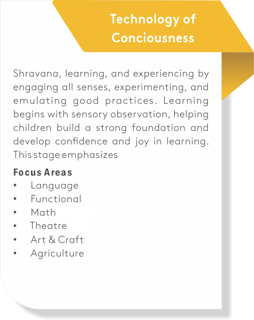 Throughout the Antah:Prerana journey, learning unfolds across six domains and deepens across three stages, progressing from experience to understanding to purposeful action.