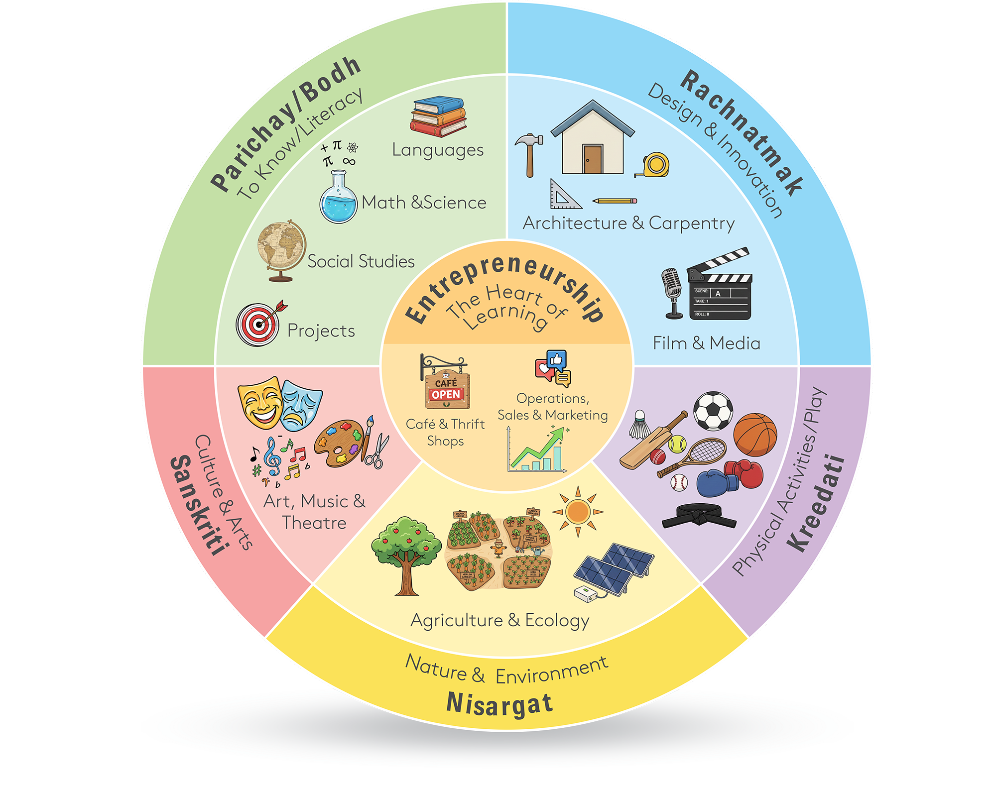 Learning at AP is organised around six interconnected domains. These domains do not operate in isolation; they interact continuously to nurture the whole child. Together, they ensure that learning is not just about knowledge acquisition, but about developing capable, compassionate, and conscious individuals.