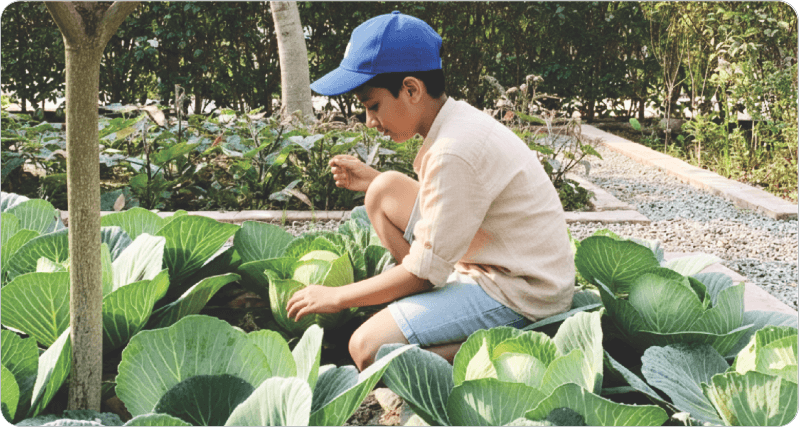 What: Children explore food systems by growing, harvesting, and understanding what they eat.