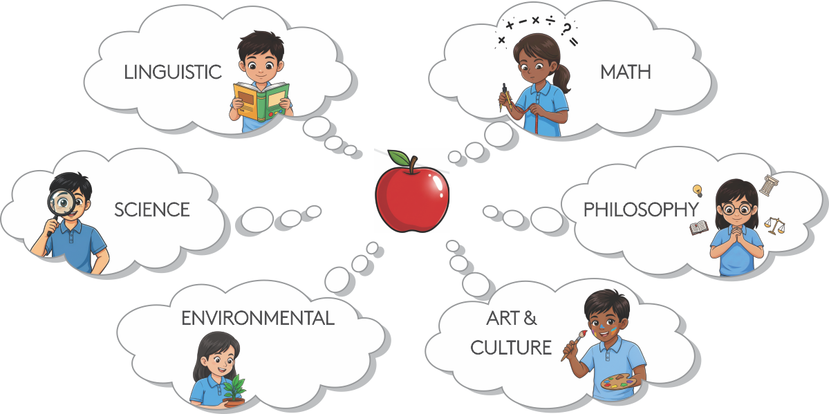 Children are guided to ask deeper questions, examine multiple perspectives, and actively seek understanding rather than memorize isolated information. This approach nurtures curiosity and inquiry by helping learners explore relationships between ideas, disciplines, and perspectives. By engaging with multiple viewpoints, children develop awareness, empathy, and compassion, learning to question deeply, think holistically, and seek meaningful understanding in a complex world.